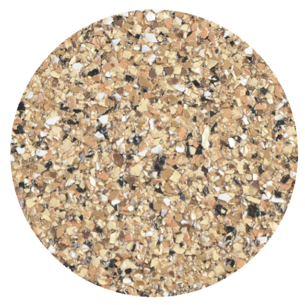 Our decorative colour flakes also known as chip or fleck are made of a vinyl composite and have been developed to soak in and absorb resinous coatings such as Epoxies, Urethanes and Polyureas. Our flake blends are manufactured to the highest quality standards and provide 100% UV stability.