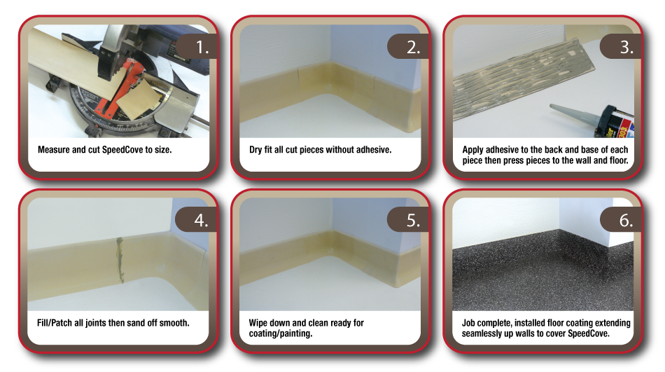SpeedCove precast cove base moulding is a revolutionary product used to eliminate the joint at wall/floor intersections and provide a seamless coating/painting application onto walls, instead of having to create coving by hand which can be labour intensive and inconsistent.