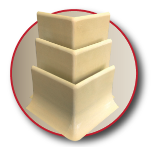 • Flexible polymer composite allows cove base to follow general bends in wall and floor, without showing imperfections.