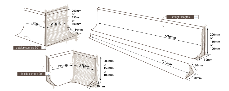 • Precast 1210mm lengths and pre formed 90 degree corners makes installation fast and easy even for unskilled workers.